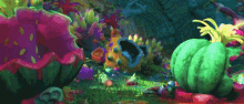 На своём пути герои сталкиваются с разнообразными удивительными существами и ландшафтами — от гигантских растений до мудрых доисторических животных. Каждый этап путешествия помогает персонажам раскрыться с новой стороны и понять, что страх и осторожность не всегда лучший способ справиться с трудностями. Постепенно Грюг начинает доверять своей семье и открывается для новых возможностей.